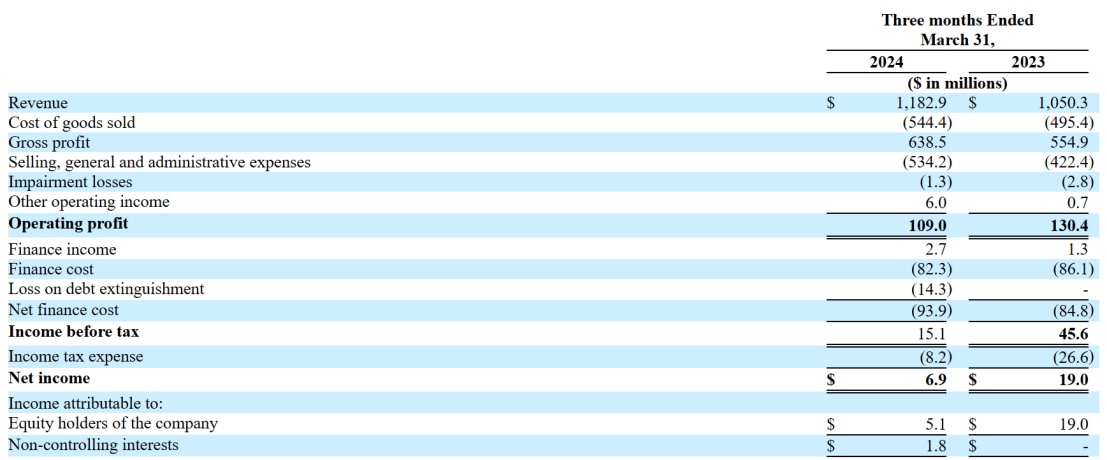 智通财经APP了解到,5月21日,亚玛芬体育(AS.US)公布了2024Q1季度业绩。数据显示,亚玛芬体育Q1营收同比增长13%至11.8亿美元,超出了分析师平均预期的11.3亿美元;然而,其当期净利润为690万美元,同比下降超过60%;归属于股东的净利润为510万美元,同比下降超过70%。