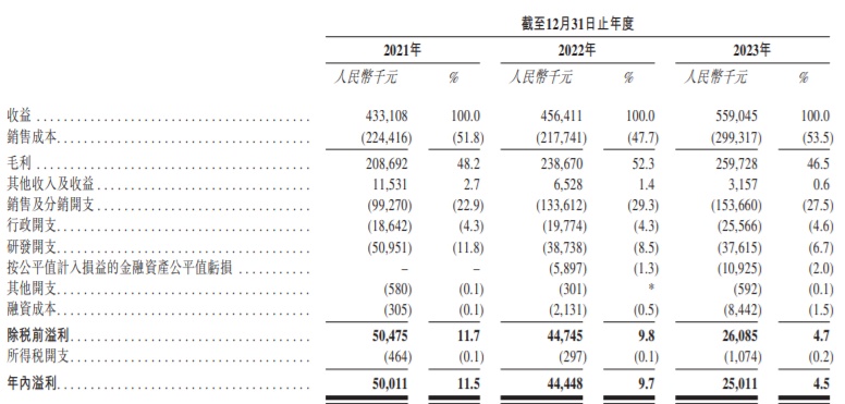 财务方面,于2021年、2022年、2023年,宜搜科技实现收益分别约为4.33亿元、4.56亿元以及5.59亿元人民币;同期,年内溢利分别约为5001.1万元、4444.8万元以及2501.1万人民币。