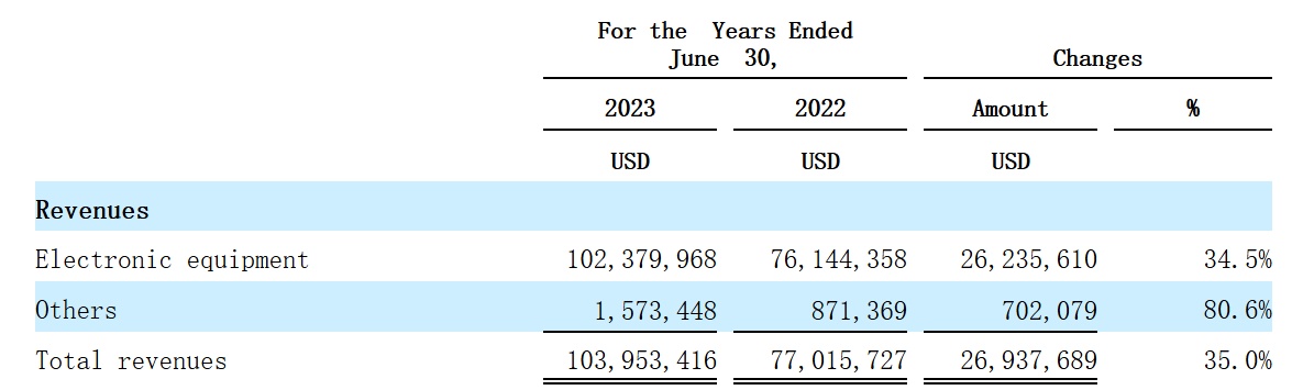 据招股书显示,嘉乐科技主要的收入还是来源于电子设备,2023财年时,其来自电子设备的收入占比为98.49%,是嘉乐科技收入的绝对大头,而其他产品所占收入占比较低,并非公司的核心业务。