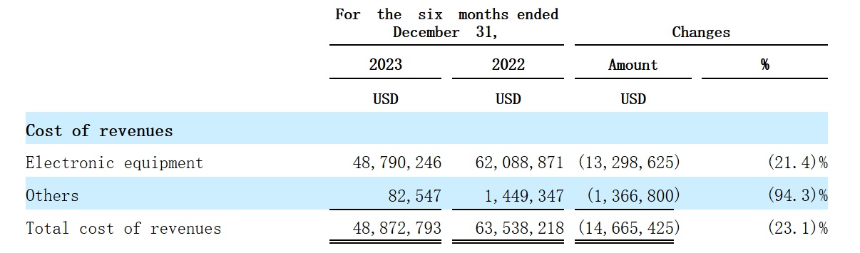 据招股书显示,嘉乐科技主要从事于消费电子产品的批发,但其业绩波动较大。2023财年(截至6月30日止12个月)时,嘉乐科技的收入为1.04亿美元,同比增长35%,且净利润扭亏为盈,从亏损8.1万美元转为盈利221万美元。但至2024财年上半年(即2023年的下半年),嘉乐科技的收入同比下滑25.3%至4873.25万美元,且净利润由盈转亏,从盈利73.9万美元转为亏损90.26万美元。