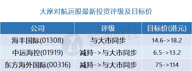 该行表示,上调对东方海外国际(00316)今明两年盈利预测36%与32%,并上调中远海控(01919)同期盈利预测98%与61%。该行亦上调对海丰国际(01308)今明两年盈利预测26%与5%,但下调2026年盈利预测3%。