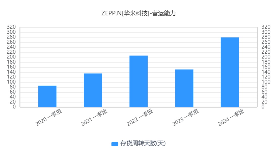 在此次Q1季度财报中,华米存货规模虽然从去年同期的6.03亿元下滑至5.26亿元,但存货周转天数却从151.2天大幅反涨至279.7天,周转率也从0.60下滑至0.32次。这也就意味着华米或正在面临存货积压和周转不畅的问题。