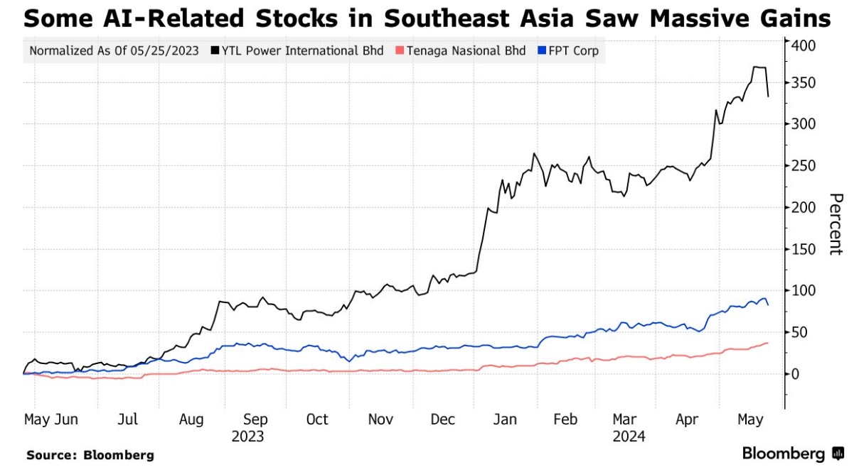 马来西亚公用事业公司YTL Power International Bhd的股票。自与英伟达公司签署协议,在柔佛州建立一个价值43亿美元的人工智能数据中心以来,该公司的销售额翻了一番。