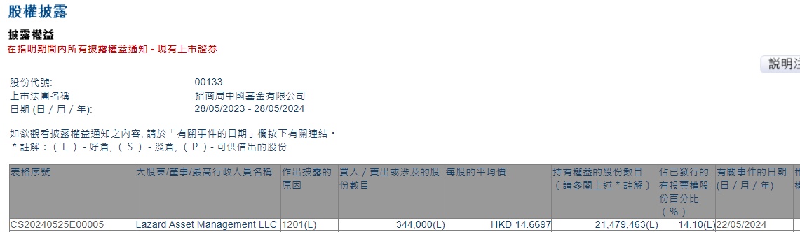 智通财经APP获悉,香港联交所最新资料显示,5月22日,Lazard Asset Management