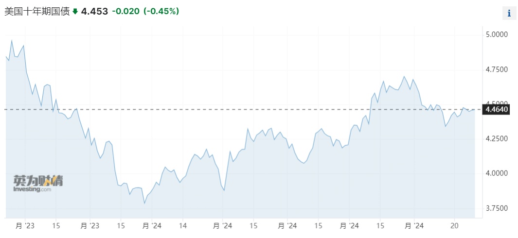 智通财经获悉,美国国债周二小幅波动,2年期美国国债收益率保持在三周高位附近,投资者正在等待一系列债券拍卖和美国通胀报告。美国政府将于周二发售2年期和5年期美国国债,次日将发售7年期美国国债。美联储偏爱的通胀指标——核心PCE物价指数将于周五公布。2年期美国国债收益率下滑两个基点,至4.93%,基准10年期美国国债收益率保持在4.46%附近。最近几周,由于美联储官员重申,央行不应急于降息,债券市场出现波动,这让人们对何时开始放松政策的看法蒙上了阴影。