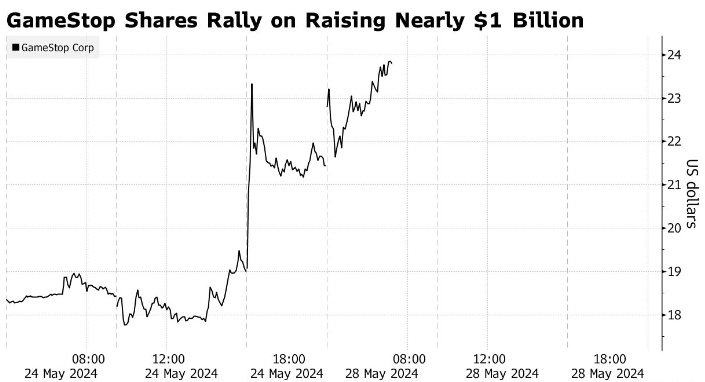 智通财经获悉,周二,视频游戏零售商游戏驿站(GME.US)的股价在盘前交易中继续上涨,此前该公司表示,由于投资者对这只所谓的“meme股”重新产生兴趣,该公司通过股票出售计划筹集了近10亿美元。截至发稿,游戏驿站股价上涨27%,市值有望增加16亿美元。这家视频游戏零售商上周五表示,利用本月早些时候的交易热潮,该公司出售了4500万股股票,筹资约9.33亿美元。