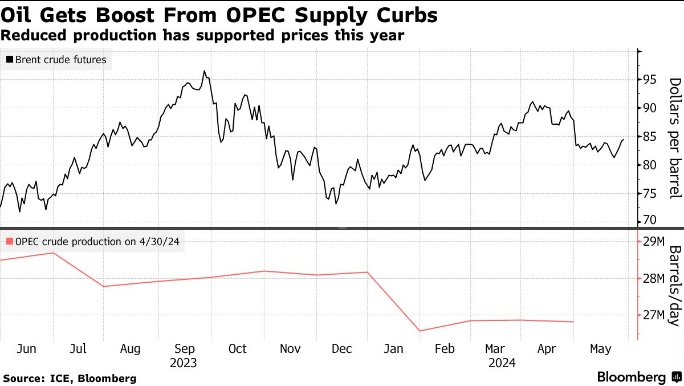 今年油价之所以上涨,一方面是因为中东地区的紧张局势,另一方面是因为OPEC及其盟友的减产措施。然而,自4月初以来,由于OPEC+以外地区的供应充足以及亚洲需求的减弱,油价有所回落。OPEC+计划在周日举行在线会议,预计会将减产措施延续至2024年下半年。