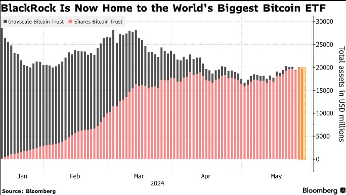 根据汇编的数据,该交易所交易基金(ETF)周二持有的比特币价值高达196.8亿美元,超过了灰度比特币信托基金的196.5亿美元,后者曾长期占据市场领导地位。紧随其后的是富达投资,持有量为111亿美元。