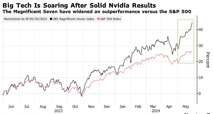 英伟达向交易员发出信号,表明与人工智能计算相关的股票飙升势头尚未放缓。自英伟达的季度收益再次重振投资者“AI信仰”以来,追踪科技巨头的指数飙升,助长了围绕人工智能的狂热。自上周三晚些时候公布业绩以来,仅英伟达一家公司的市值就增加了约4700亿美元。
