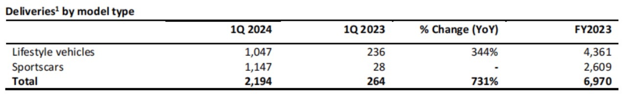 路特斯第一季度交付了2194辆汽车,同比增长731%。公司开始在中国交付其首款纯电超跑轿车Emeya,并将其产品组合进一步扩大到四款车型。在中国市场,第一季度交付量同比增长超过100%。