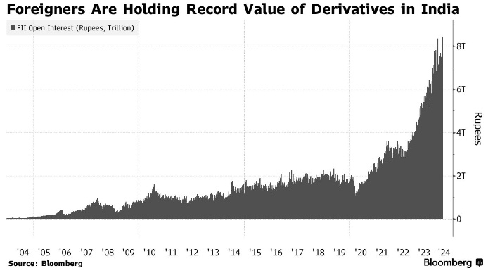 外国人在印度持有的衍生品价值创下历史新高