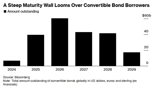 对冲基金研究公司(Hedge Fund Research,简称HFR)的数据显示,可转换套利策略在2024年前四个月的回报率为4.4%,优于其他相对价值策略。由于企业希望在未来五年内延长超过2000亿美元的可转换债券的到期期限,这将再次带来提振。而由于受到低于传统债券的利率的吸引,以及接近历史高位的股价的鼓舞,其他公司也选择进入这个市场。