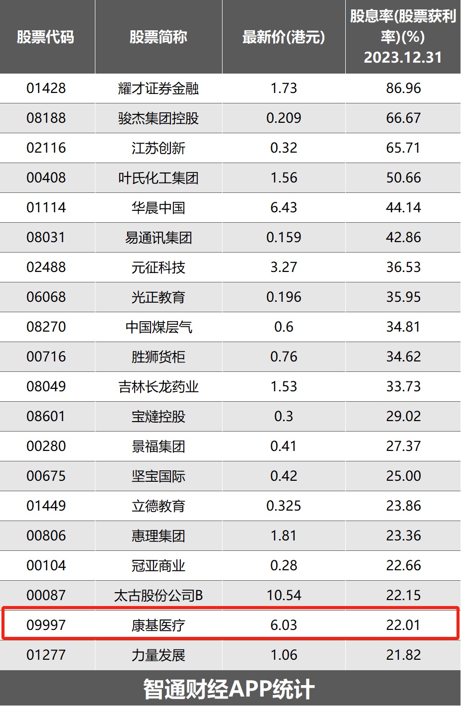 不过也正是2023年的慷慨分红和高股息率,让康基医疗跻身2023年港股公司股息率前20。根据智通财经APP统计,按2023年股息率计算,其在总共2642只股票中排第19。