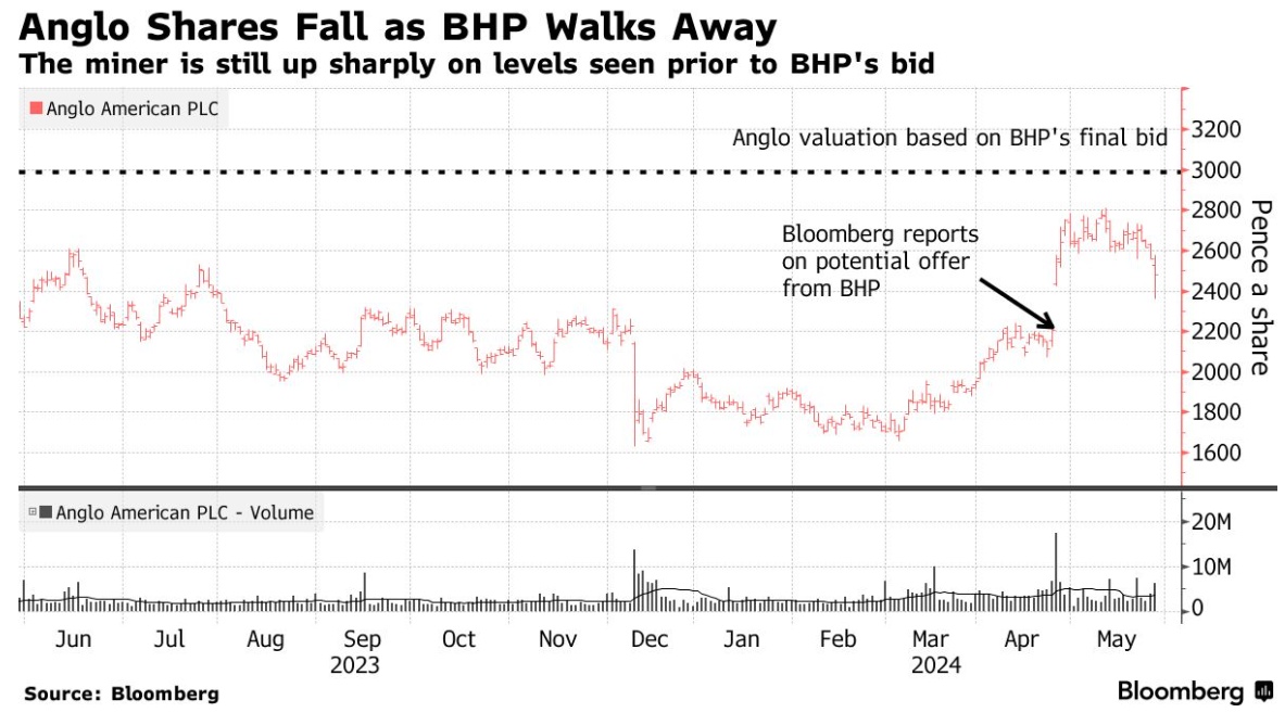 在距离截止时间不到一小时的时候,必和必拓证实,未能达成一项协议以获得英美资源集团董事会的支持,因此不会继续进行收购,必和必拓必须退出至少六个月。