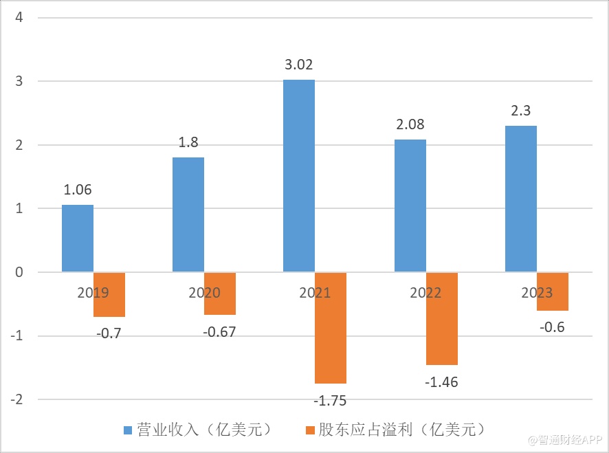 不过,值得一提的是,2023年公司营业费用从去年同期的2.58亿美元下降至2.12亿美元,其中研发费用就下降了0.43亿美元;全年净亏损由1.46亿美元下降至0.6亿美元。公司亏损的收窄在多大程度上归因于研发费用的缩减,尚且有待商榷。