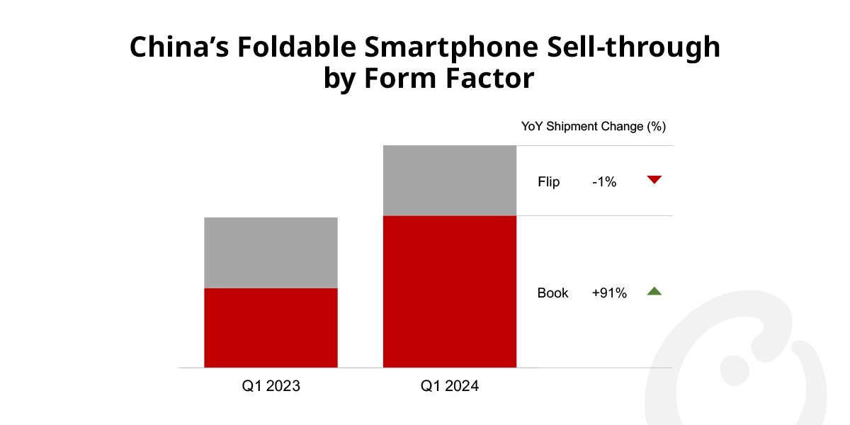 智通财经APP获悉,据CounterpointResearch数据显示,中国2024年第一季度折叠屏手机销量同比增长48%,增长背后的主要动力是翻折式大折叠机型,其出货量几乎翻了一番,而另一种形态的纵向小折叠机型增速平缓。更轻薄的机身设计、更多的使用场景等因素刺激了消费者对翻折式大折叠机型的需求。该机构预计中国折叠屏手机市场将继续保持健康增长态势。