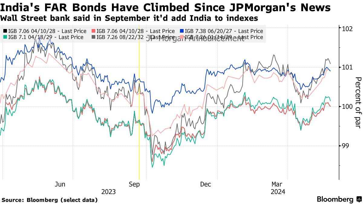 印度的主权债券将于6月底被纳入摩根大通的旗舰新兴市场债券指标,预计这将吸引多达400亿美元的海外资本进入印度。此外,印度大选已接近尾声。高盛分析师表示,尽管短期内选举结果对金融市场很重要,但“最终印度资产回报更有可能受到印度国内宏观基本面强劲程度的推动”。