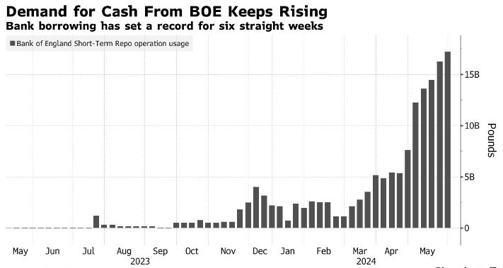 英国央行抛售债券已使英国经济中的闲置现金数量降至2021年以来的最低水平,许多分析师因此呼吁结束该政策。他们担心,如果流动性下降太多,将推高货币市场的借贷成本,并削弱英国央行降息的能力。