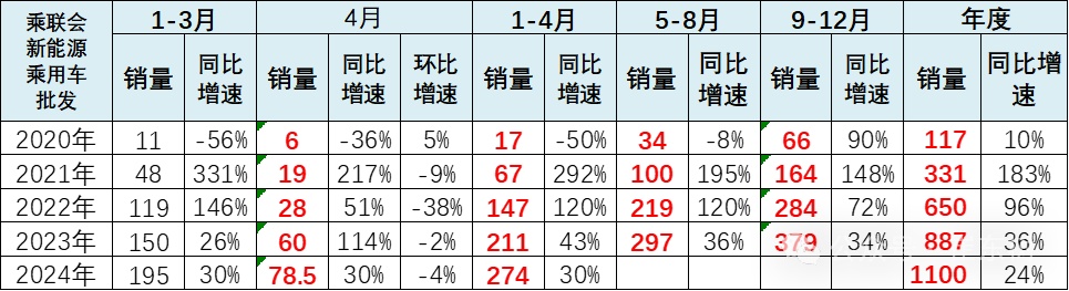 1. 2024年4月新能源车批发很强