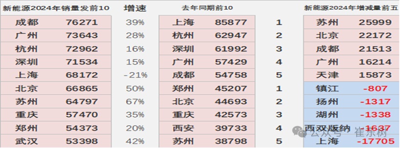 2024年新能源相对于2023年同期仍是大幅增长,苏州、成都、广州等增长都相对较为迅猛,形成增量的核心推动力量。