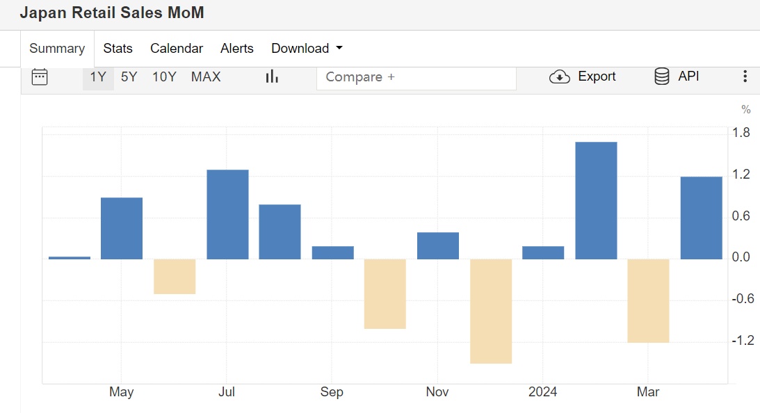 智通财经APP获悉,东京5月份通胀加速,使得日本央行在未来几个月考虑加息的可能性基本保持在轨道上,尽管日本经济继续显示出疲软迹象。日本内务省周五公布的数据显示,日本首都东京5月份剔除生鲜食品的消费者价格上涨1.9%,这一结果与经济学家的普遍预期相符,在4月份通胀下行至1.6%后转向上行,主要是由与可再生能源附加费相关的公用事业成本所推动,日本4月份零售销售额环比增速则高于预期。虽然这一最新通胀数据与日本央行锚定的2%略有差距,但是分析师普遍认为随着减税从6月开始以及一些补贴结束,通胀将明显回升。