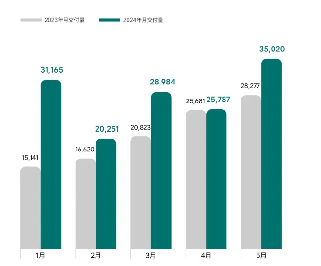 智通财经APP获悉,理想汽车公布2024年5月交付数据显示,5月交付新车35,020辆,同比增长23.8%。截至2024年5月31日,理想汽车累计交付774,571辆。