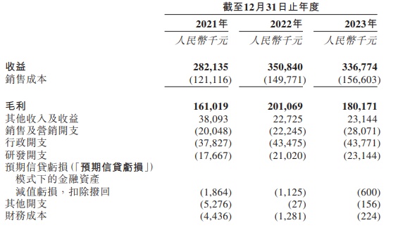 财务方面,公司于2021年、2022年、2023年分别实现收入约2.82亿、3.51亿、3.37亿人民币,同期年内利润分别为人民币8027.8万、5398万、4890.5万。