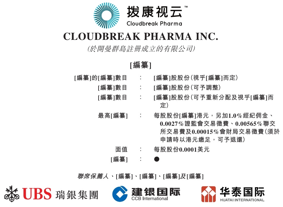 智通财经APP获悉,据港交所5月31日披露,CLOUDBREAK PHARMA INC.(拨康视云)第二次向港交所主板提交上市申请,UBS瑞银集团、建银国际、华泰国际为其联席保荐人。