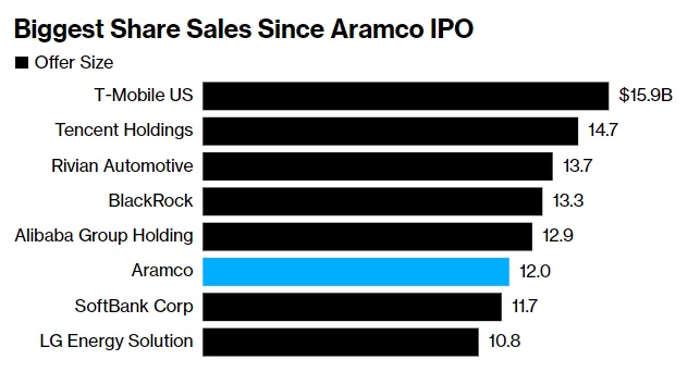 智通财经获悉,在周日欧佩克+会议召开的同时,沙特政府完成了对国有石油巨头沙特阿美公司120亿美元的股票出售,为一项大规模的经济转型计划筹集资金。沙特阿美的股票在周日交易开始后不久就售罄,这对正在寻求资金帮助支付大规模经济转型计划的政府来说是一个福音。根据交易条款,在开售后的几个小时内,股票就获得全部认购;发售价格在26.70里亚尔到29里亚尔之间。