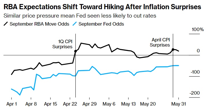 另一个强劲的季度价格会让以通胀为目标的央行感到担忧。澳洲联储在5月份的会议上恢复了加息讨论,并表示不排除任何可能性。这是在整体经济放缓、失业率上升和消费者支出疲软的情况下发生的。