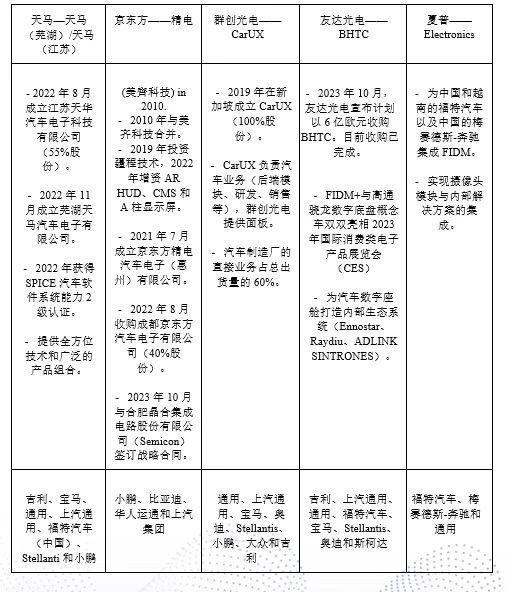 表1:2024年上半年面板供应商的汽车一级供应商业务情况