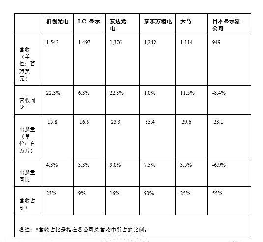 Display(9%)。友达光电、群创光电和天马是全显示模块业务的先驱企业,尽管出货量增长甚微,但营收已开始实现大幅增长。