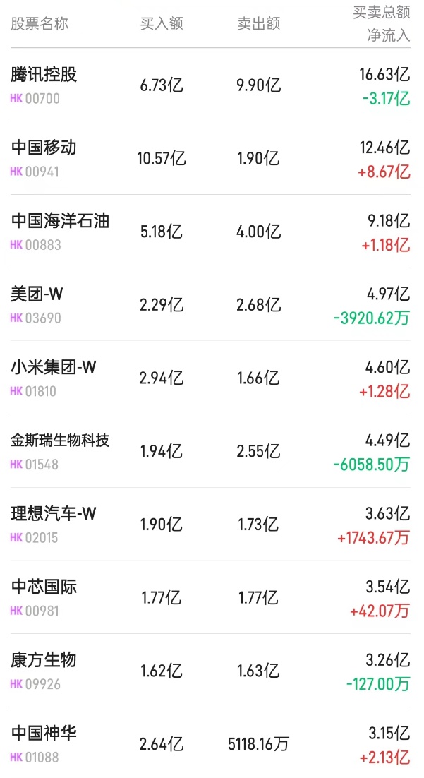 此外,小米集团-W(01810)、中海油(00883)分别获净买入2.61亿、1.12亿港元。而中国电信(00728)、中芯国际(00981)分别遭净卖出2.93亿、2743万港元。
