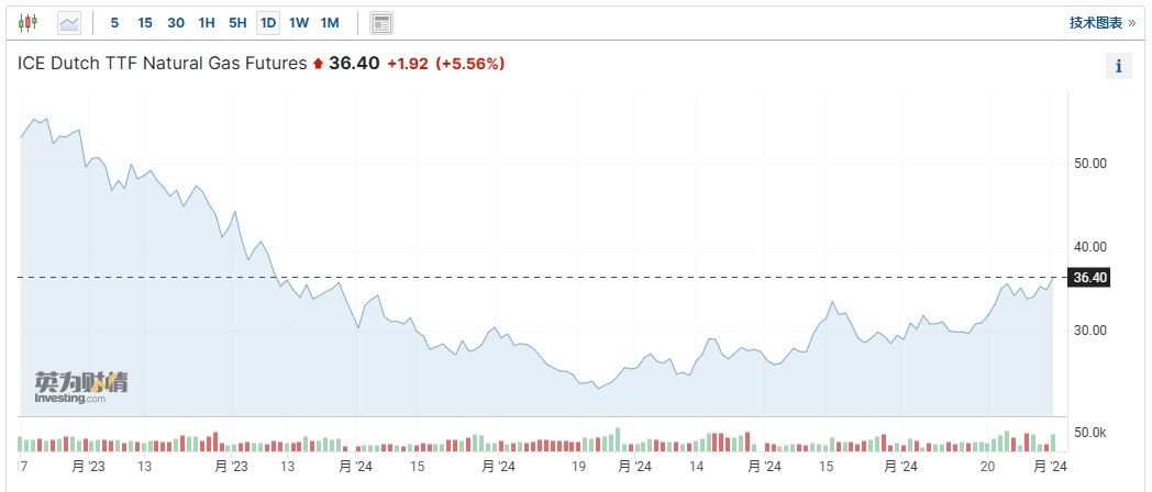 周一,由于挪威天然气供应意外中断,欧洲天然气价格涨超5%,报36.4欧元/兆瓦时。据悉,天然气交易员正关注挪威天然气管道运营商挪威天然气运输管理公司的通知。这家企业正对输气设施进行季节性维护,其维护工作量预计本月会减少。挪威天然气运输管理公司说,不清楚供气中断的原因,何时恢复尚不确定。