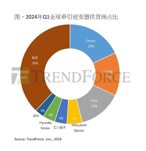 供应链方面,在中国国产替代的战略下,全球前五大的牵引逆变器Tier 1中,已有比亚迪及汇川技术两家中国企业。其中,比亚迪的逆变器属于自研自产产品,用于自家车型,汇川技术深耕理想、小鹏等新创新能源车厂。此外,华为的市占率已连续三季季增1%,未来能否进入前五大供应商值得观察。整体而言,第一季包含比亚迪与汇川技术在内的中国占比为34%,由欧美日Tier 1主导牵引逆变器的局面已被打破。