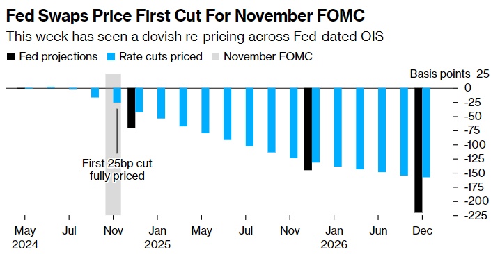 掉期交易员目前正将美联储首次全面降息25个基点的预期从12月提前至11月。在现货市场,摩根大通的美国国债客户调查显示,直接多头仓位升至3月以来最高,进一步显示出积极动能。