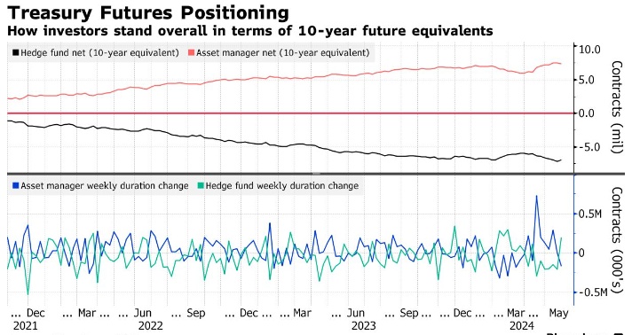 在美国商品期货交易委员会(CFTC)截至5月28日当周的数据显示,约有17万份10年期美国国债期货出现多头平仓后,所谓的实钱账户逆转了美国国债期货多头持续时间延长的六周趋势。最严重的平仓出现在曲线的长端。另一方面,对冲基金本周买入近20万份10年期美国国债期货,以弥补净空头。