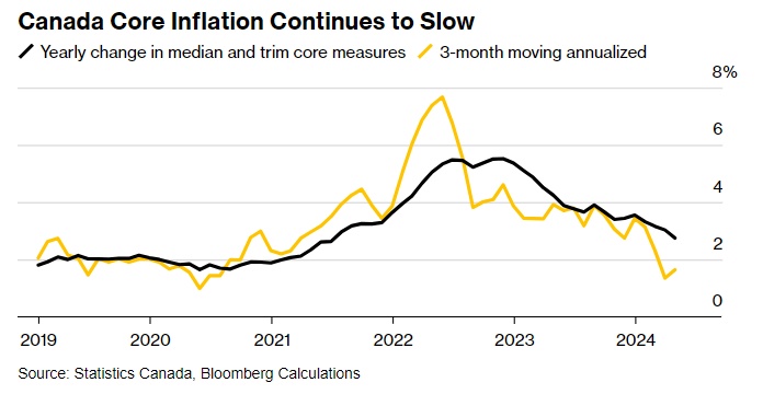 显然,加拿大经济不再需要限制性利率。但对于谨慎的加拿大央行行长Tiff Macklem和其他政策制定者来说,是在本周三降息还是在7月24日降息,将取决于他们对通胀得到控制的确定程度。