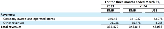 在门店网络优化和经营效益的合力驱动下,Tims天好中国在一季度实现高质量发展,盈利能力持续改善。公司一季度总营收达到3.468亿元,同比增长3.1%;系统销售额达3.635亿元,同比增长7.1%;自营门店层面经调整后EBITDA为610万,同比增长2%,已经连续7个季度为正。