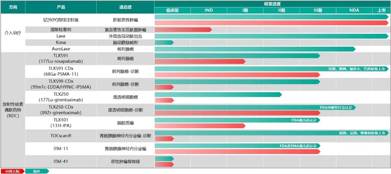 目前,远大医药核药板块已有4款创新 RDC药物获批开展临床研究,其中3款已进入III期临床阶段,包括诊断前列腺癌的产品TLX591-CDx、诊断透明细胞肾细胞癌产品 TLX250-CDx,以及治疗GEP-NETs的产品ITM-11。