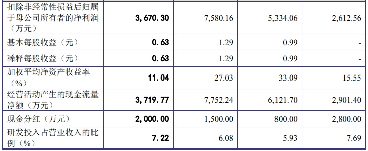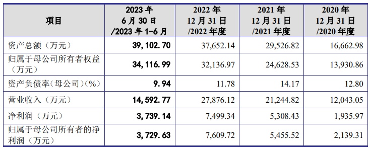 财务方面,于2020年度、2021年度、2022年度以及2023年1-6月,丹耀光学实现营业收入分别约为1.20亿元、2.12亿元、2.79亿元以及1.46亿元;同期,该公司实现净利润分别为1935.97万元、5308.43万元、7499.34万元以及3739.14万元。