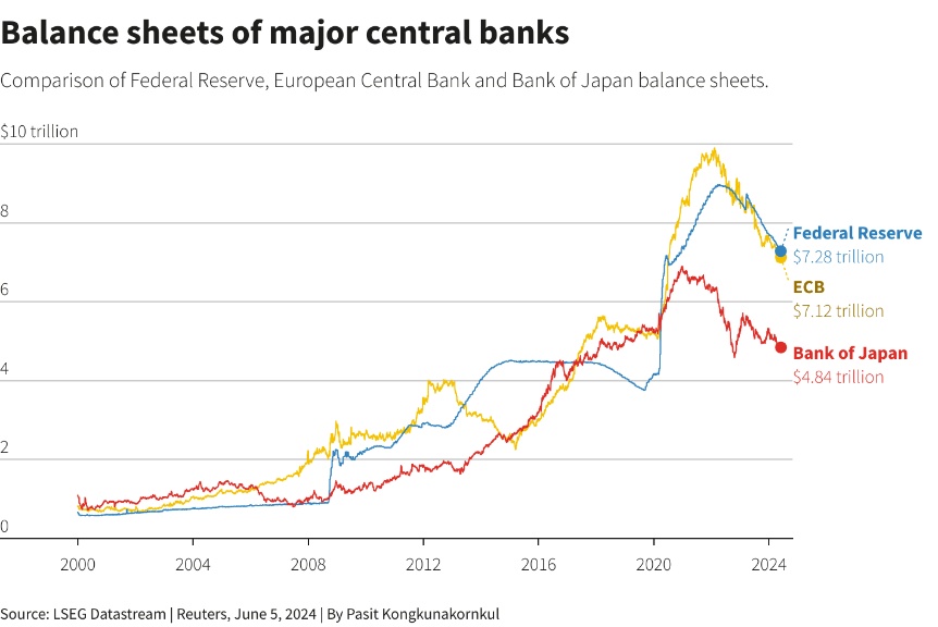 今年3月,日本央行终结了长达八年的负利率和收益率曲线控制(YCC)政策,标志着从激进的货币刺激政策向更为宽松的政策转变。YCC政策曾通过大量购买债券,将基准10年期债券收益率限制在接近0%的水平。