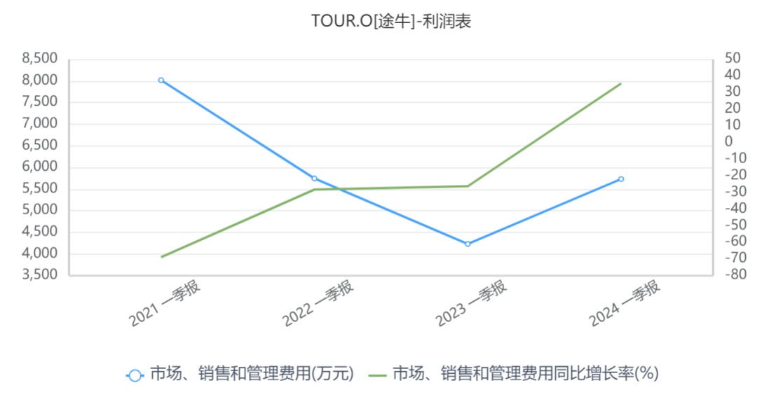 在市场复苏趋势推动收入增长的同时,途牛的费用控制也从疫情时的全面收紧开始向有的放矢的方向调整。这一趋势从2023年开始出现,在今年出现大幅增长。