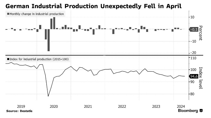 智通财经APP获悉,德国4月工业产出意外连续第二个月下降,这标志着这个欧洲最大经济体本季度开局疲软。