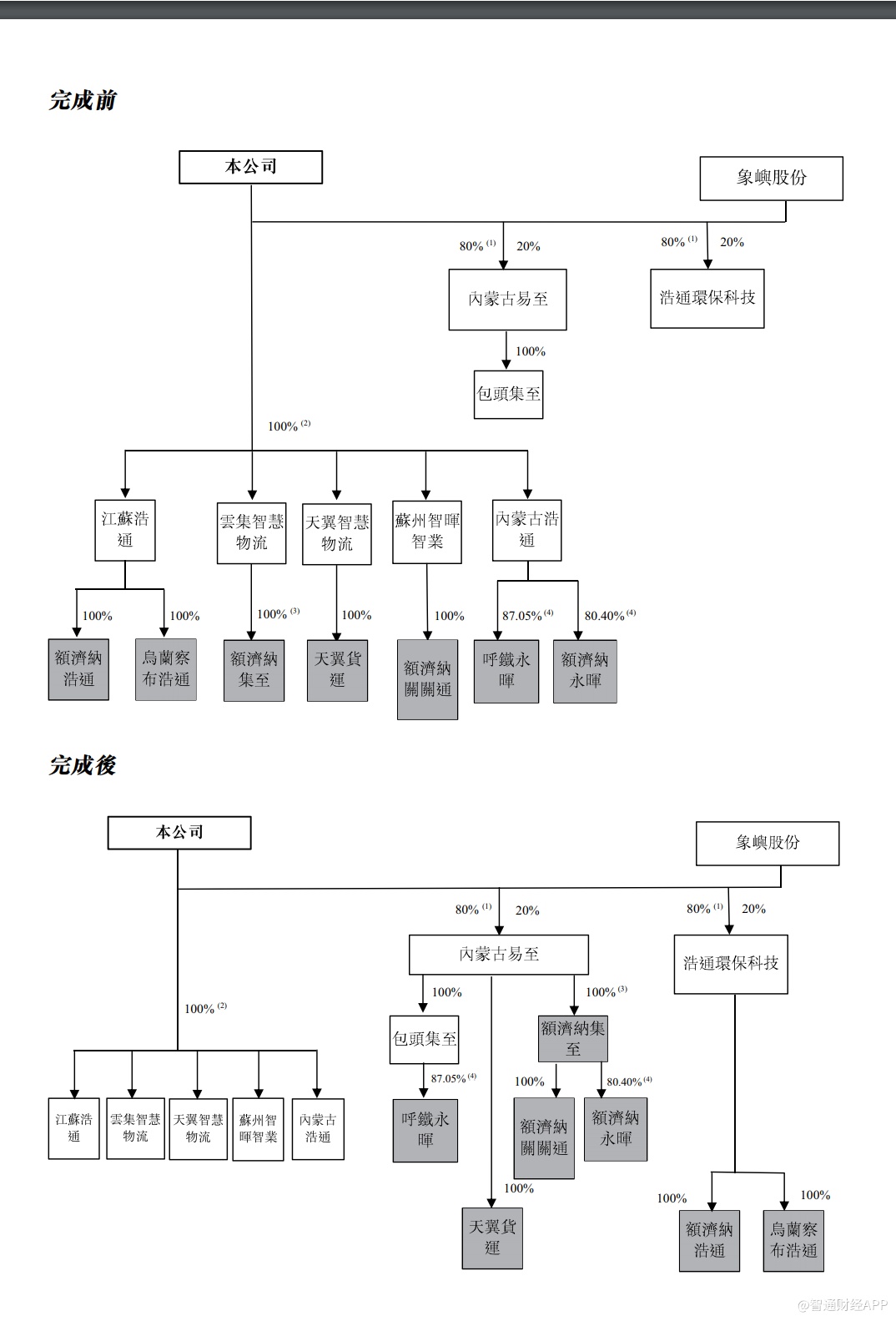 智通财经APP讯,易大宗(01733)发布公告,于2024年6月7日,各卖方及相关买方(均为公司附属公司)订立股权转让协议,各卖方同意根据相关股权转让协议的条款(各协议的条款大致相同)转让,而各相关买方同意购买各目标附属公司(额济纳浩通、额济纳集至、天翼货运、呼铁永晖、乌兰察布浩通、额济纳关关通及额济纳永晖)的相应出售权益,总现金代价金额为人民币4.61亿元。