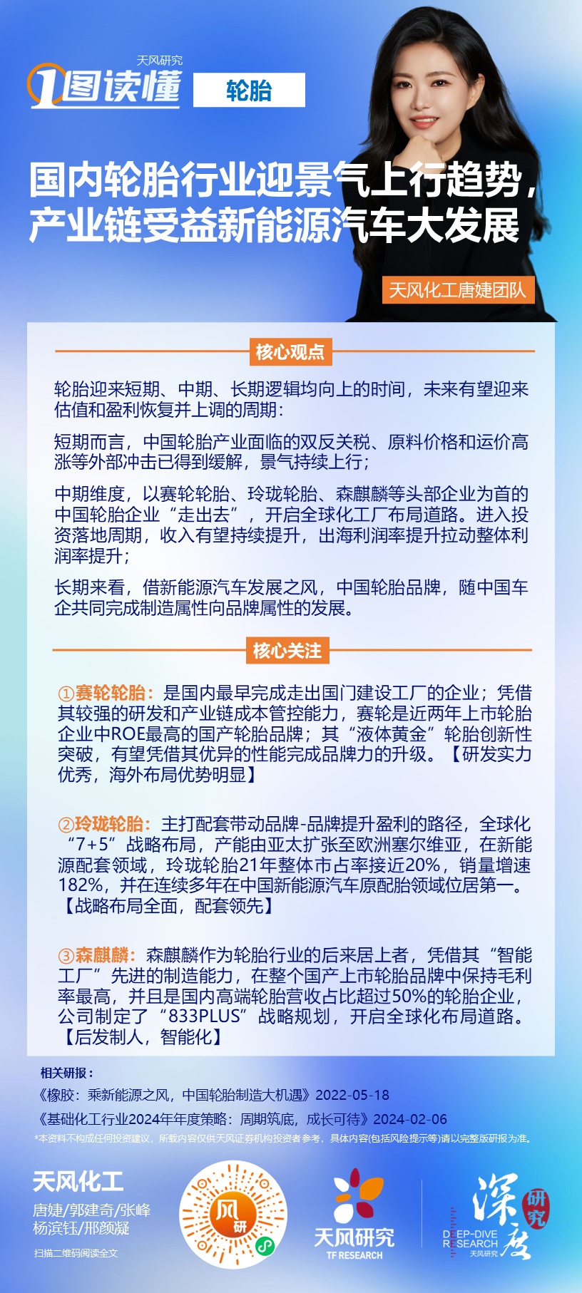 智通财经APP获悉,天风证券发布研究报告称,轮胎迎来短期、中期、长期逻辑均向上的时间,未来有望迎来估值和盈利恢复并上调的周期。短期而言,中国轮胎产业面临的外部冲击已得到缓解,景气持续上行;中期维度,头部轮胎企业“走出去”已入投资落地周期,收入有望持续提升,出海利润率提升拉动整体利润率提升;长期来看,借新能源汽车发展之风,中国轮胎品牌将随中国车企共同完成制造属性问品牌属性的发展。核心关注:赛轮轮胎(601058.SH),玲珑轮胎(601966.SH)及森麒麟(002984.SZ)。