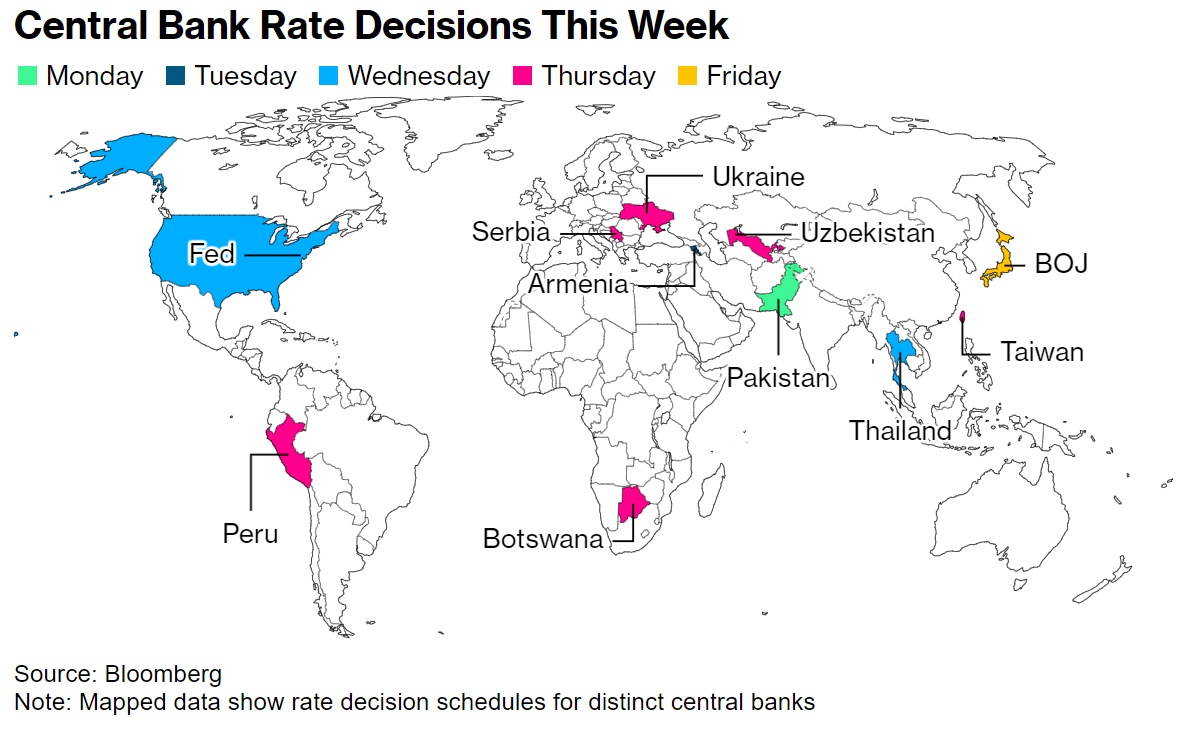 此外,日本央行可能缩减债券购买规模的决定、瑞典等国的通胀数据,以及英国关键的薪资数据,都将是本周的亮点。