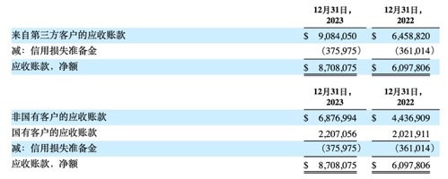 与之相对应的,2023年,公司来自第三方客户的应收账款同比增加40.65%至908.4万美元,整体应收帐款同比增长42.81%至870.8万美元。