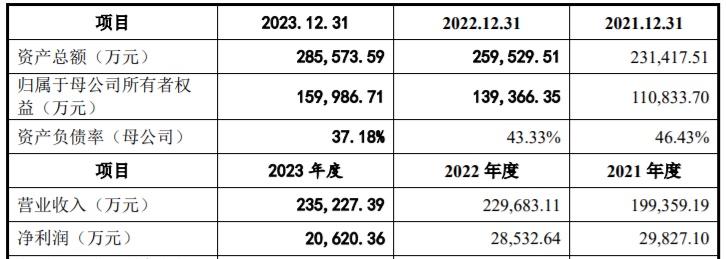 财务方面,于2021年、2022年及2023年度,中仑新材实现营业收入分别约为人民币19.94亿元、22.97亿元、23.52亿元,同期净利润分别约为2.98亿元、2.85亿元、2.06亿元。