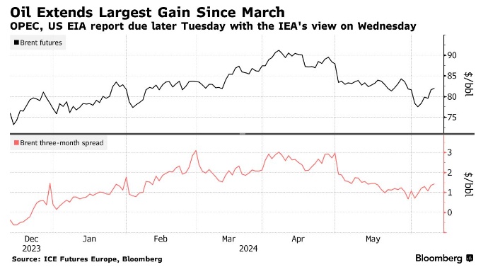 布伦特原油在周一飙升2.5%后,周二一度攀升至每桶82美元,WTI原油则上涨至每桶78美元附近。欧佩克将在周二晚些时候公布月度报告,随后,美国能源信息管理局周三将公布原油库存报告,国际能源署也将公布月度石油市场报告。